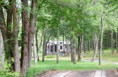 the cabins at hidden hollow are nestled in an enchanting grove of sweet birch trees and lush ferns A babbling brook (the East Fork of the French Broad River) meanders through the property. You'll find yourselves completely relaxed and immersed in nature as soon as you cross over the wooden bridge. You can fly-fish steps from your cabin or take a short drive to one of several spots on East Fork Rd/Walnut Holler. There are two cabins that can be rented together.