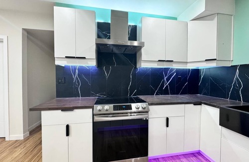 Welcome to our cozy basement one-bedroom apartment, thoughtfully designed for comfort and convenience. This stylish space features a versatile Murphy bed, allowing you to maximize the living area during the day. The fully equipped kitchen includes modern appliances, a dining counter that comfortably seats 4, perfect for casual dining and home cooking. Located in a quiet neighbourhood, this charming retreat offers a peaceful escape while at a short distance from local attractions and amenities.
