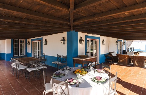 this spacious 600m² house with five suites, located in the heart of a 350-hectare private property near ermidas do sado, is the ideal retreat for families and friends looking for a spacious and comfortable getaway Set in the heart of nature, it offers an authentic farm experience, with a garden, fruit trees, and a variety of animals such as sheep, pigs, and chickens. our certified integrated production guarantees fresh and organic products, including homemade eggs, vegetables, and fruits directly from the garden!