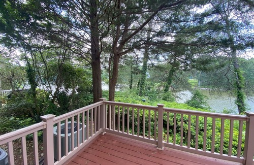 enjoy stunning water views from the large outdoor deck and enclosed sunroom perfect for relaxing or entertaining The fully equipped kitchen features modern appliances and opens to a generous family room and formal dining area. Upstairs, the spacious master suite includes a walk-in closet and private bath, while two additional bedrooms share a full bathroom. One bedroom currently serves as a sitting area/office with a pull-out couch, easily convertible to a large bedroom.