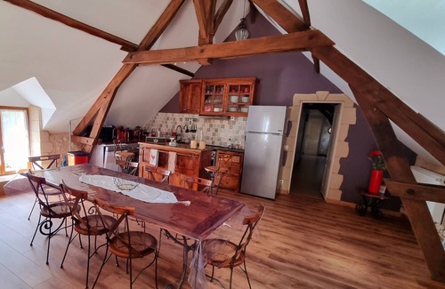 This spacious cottage with authentic charm has its independent entrance and is accessible by a staircase. In the garden, a private area with pergola, garden furniture for 8 people and BBQ is reserved for you .