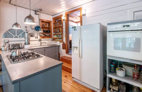 kitchen: the kitchen is well stocked with pots, pans, spices, cooking oils, salt and pepper There is a gas stove with 4 burners for those who like to cook. We also have an oven, microwave, and toaster oven. Full fridge and freezer — we have ice cube trays but no ice maker. French press for coffee, blender, and magic bullet, too! Organic coffee, half and half, and a selection of teas are also supplied for your enjoyment.