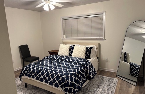 Bryan/College Station is waiting for you at this recently refreshed 3-bedroom house. Nestled in a tranquil neighborhood, guests can relax and unwind with access to everything you want within minutes. With 1 queen bed and 2 full beds, everyone will have a peaceful night's sleep. The 2 bathrooms are nicely appointed with a bathtub/shower and fresh linens/toiletries. Whether you're visiting for a sporting event or an on-campus function, you will not find a more convenient property to serve as home base for your getaway. We look forward to welcoming you! Walk across the street to the beautiful new Midtown Park and visit Legends Event Center, TopGolf, or Schulman Movie Bowl Grille. Or drive 5 minutes to Century Square, PopStroke, shopping, and restaurants. You will not find a more convenient location!.