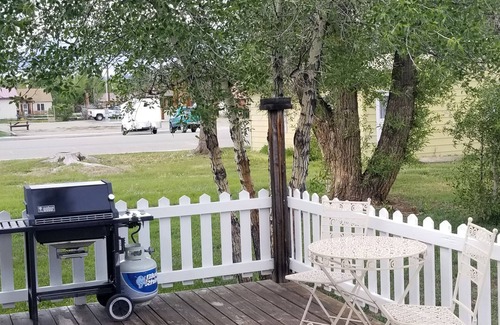 Perfect home for a couple or small family. This historic home has a great deck to sit out and relax with a private grill and seating. Right in the center of Pinedale, you are only steps away from restaurants, shops, grocery stores and more! This house has 1 bedroom with a full bed and a separate fold out twin bed that can be used in the livingroom. Kitchen is fully stocked with what you will need for your vacation. Wifi avaliable as well as a smart tv with Roku, Netflix, and Disney Plus..