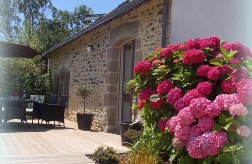 you will stay in a lovely breton style penty west side, with a beautiful garden and trees, nestled in the hydrangeas and oaks Can accommodate up to 8 people (ideally 6 people), the penty has been completely renovated by us in sober and bright colors. The decor is simple and neat for your comfort.