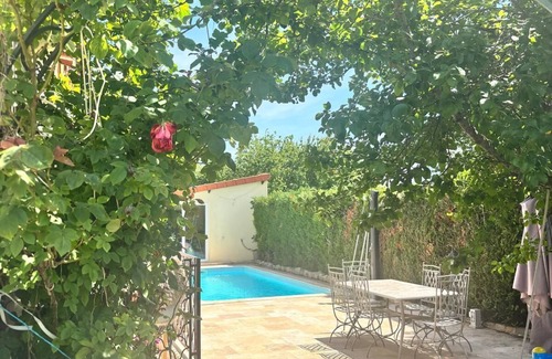 Air-conditioned accommodations at Charming house with swimming pool offer hair dryers and irons/ironing boards..