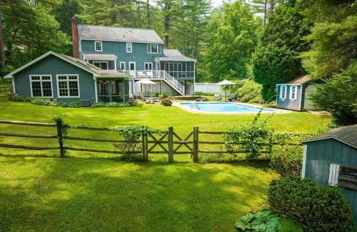 Whether you’re an adventure seeker, an avid skier, a music fan, or a theater lover, Lenox offers something for everyone that can be enjoyed just minutes from this 3-bedroom, 2.5-bathroom vacation rental house. The property boasts free WiFi, an inviting interior, a screened porch, and a great outdoor space with a pool that’s shared with the other rental on-site. go to the boston symphony orchestra, head to the catamount ski area, or explore the october mountain state forest during your visit!
