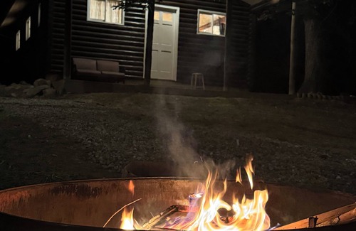 Escape to this Disney themed log cabin in the quiet countryside. This enchanting retreat features a cozy open area log cabin with 1 queen bed and 1 sofa bed, perfect for unwinding after a day of exploring. With amenities like central air conditioning and heat, WiFi and a smart TV, you will feel right at home. Kitchenette area features an apartment size refrigerator with freezer, microwave, coffee pot and a nice round table with seating for 4. The bathroom is stocked with all the essentials you need. The front covered porch features a couch and a hanging swing and it's just a few feet from a huge fire pit with free firewood! We think our place will help you experience a quiet time to enjoy nature and get away from the hustle and bustle.