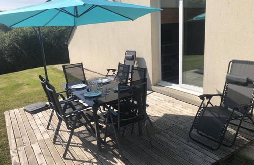 Detached house. Living room. Kitchenette. Shower room. WC. Upstairs, bedroom 1 (1 double bed 140x190), bedroom 2 (2 single beds 90x190). WC. TV. DVD player. Internet. Washing machine. Dryer. Dishwasher. Bed linens available. Housekeeping service available at an additional cost. Electric heating and heat pump available at an additional cost. Private enclosed grounds. Terrace. Picnic table. Overlooking a pleasant green valley, this cottage impresses with its contemporary design! Albert and Sylvie have worked hard to offer you accommodations where light, color, and comfort are the order of the day. a place and a region to discover!