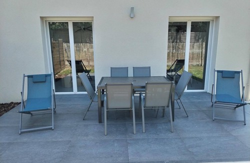 you can enjoy a fenced garden with a terrace for your relaxing moments Two parking spaces are available within the property. The garage, dedicated to storing outdoor furniture (garden furniture, parasol, deckchairs, barbecue, etc.), cannot be used for parking vehicles.