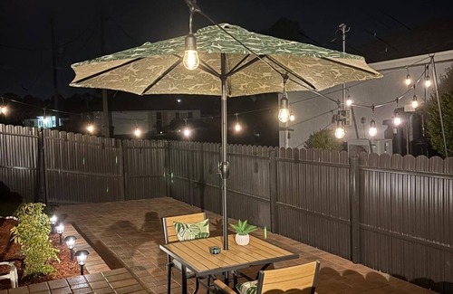 the studio features a small designated work area, a private bathroom, and a lovely patio with a fence separates the studio from the main house, ensuring privacy through out your stay