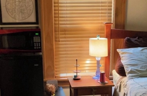 Make yourself at home in this adorable studio Atlanta retreat. The cozy space features 1 queen bed, a bathroom with a shower, and essential amenities like a hair dryer, heating, and AC. Guests can unwind in this soothing and tranquil environment, perfect for a relaxing getaway. Experience the magic of Atlanta at our studio featuring an en-suite microwave, mini fridge and Keurig coffee maker. The shared front porch is fully screened and features a small dining table, overhead fan and relaxing gliding sofa..