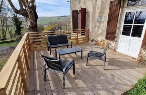 the gîte also features a private wooden terrace, ideal for enjoying moments of relaxation outdoors while admiring the surrounding natural setting