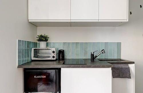this 25-sqm apartment is located on the 3rd floor without an elevator The studio's living area comes with a sofa bed and dining table with two chairs. The apartment includes Wi-Fi, suitable for working from home and making video calls.