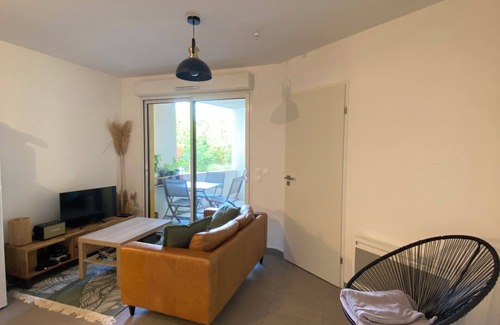Charming T2 with terrace, ideally located in a quiet area is located in Mauguio. Charming T2 with terrace, ideally located in a quiet area provides accommodation, featuring Internet, Laundry, Air Conditioner, among other amenities. This Apartment features Internet, Laundry, Air Conditioner, to make your stay a comfortable one.