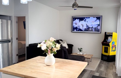 Welcome to the sweetest tiny home in Sweetwater. This excellent property features 2 cozy bedrooms, one with a queen bed and the other with a full bed. With WiFi, AC, and heating available, guests can stay connected and comfortable throughout their visit. The bathroom is well-equipped for your convenience. Our tiny home also offers a comfy living room, full kitchen, as well as a great outdoor space with a firepit to enjoy. You're sure to make fantastic memories with a stay at our place..