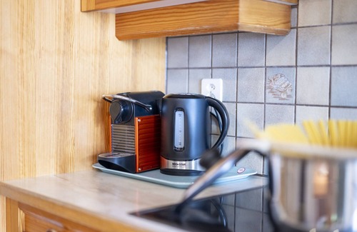 - kitchen equipped with dishwasher, oven, glass ceramic cooker, coffee machine, tea maker, toaster