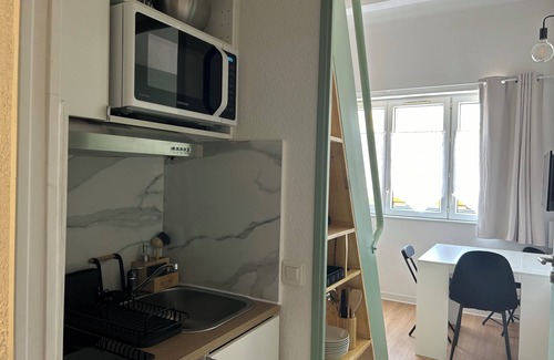 - a small, equipped and functional kitchen with microwave and tassimo coffee machine