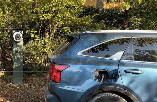 Electric car charging station on site