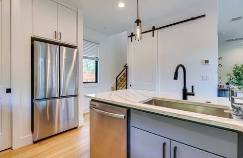 Relax and enjoy the Austin sun in this 2-bedroom, 2.5-bathroom vacation rental. At this lovely house, you’ll be able to sit outside and enjoy cornhole or the fire table. Get your fill of downtown Austin just 4 miles from your stay and enjoy your selection of local bars and restaurants. For families visiting their scholars at the University of Texas Austin, keep the youngin’s entertained with a trip to The Thinkery. let your worries melt away and enjoy the best the lone star state has to offer!