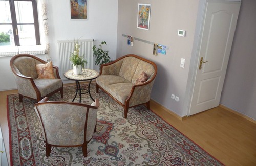 from a cozy reading and play room you have a view along the south side of the basilica in the direction of upper town and to the south towards the evangelical church A small stereo system with CD player is installed in the reading and play room. Internet access via WLAN is available.