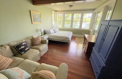 for an additional $1000/wk there is the option of including a guest cottage that sleeps 4 persons It has a galley kitchen, 2 bedrooms, one bedroom with 2 twins and another bedroom with a queen, and a clawfoot tub/shower in the bathroom. It has it's own deck and an additional outdoor shower. It is perfect for a small young family, in-laws or those who want their own space away from the main cottage.