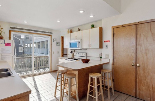 Invite family and friends to discover the natural beauty and simplicity of Chirality (pronounced kie-ra-lity; “chirality” is synonymous with “handedness” Gr. cheir, hand). This oceanfront home in Duck is situated right on the beach with panoramic views of the Atlantic. Enjoy the salty ocean breezes from the expansive sun deck on the east side of the home, then head upstairs to the west-facing screened porch for witnessing phenomenal sunsets. A private walkway takes you from the oceanfront deck across the dunes for effortless access to the beach. Spend the day swimming, surfing, fishing or shelling - the possibilities for around-the-clock oceanfront fun are endless. Back at the house, the thoughtfully designed open-concept layout in the great room allows everyone to admire the unobstructed ocean view. Unique features include soaring vaulted ceilings, transom windows, and a two-sided wood burning fireplace. When you're not dining out at one of Duck's fabulous restaurants, prepare meals at the house using the well-equipped kitchen. It's situated right off the great room with a breakfast bar overlooking the living area, so you can still mingle and enjoy the spectacular view while cooking.