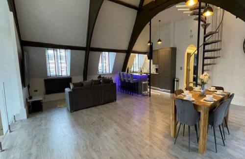 we are very excited to offer accommodation, stylish and luxurious conversion of a church in the heart of blackpool It is perfect for anyone who is looking for a unique place to stay on the Fylde coast The 1900-square foot flat comfortably sleeps up to six guests. Children are welcome and the property has already proved popular with families, as well as couples. We are not accepting bookings for hen or stag parties and pets.