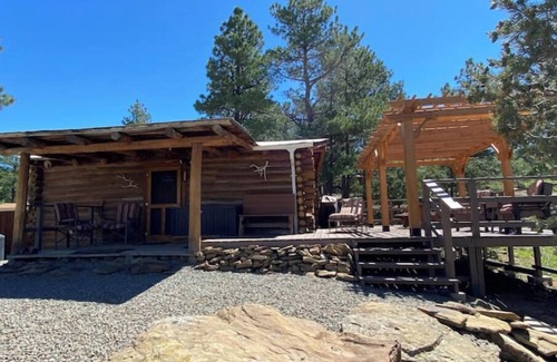 Discover the quiet of natures beauty in The Spanish Peaks area of Southern Colorado. Nestled in a Tall Ponderosa Pine forest. This property is for groups that have members where some may want to be able to use their RVs or Tents, while some may prefer a comfy cabin experience. Plenty of room for a families and friends get away . Unplug in a beautiful Mountain setting. Celebrate that family reunion, special Birthday or graduation parties, old friends get together with an escape from the City. Make lasting memories with your family(s) on vacation. Rustic Log cabin sleeps 6, with extra room for up to 4 -RV's , 45 ft. max length, 12. ft. 6 inch max height to get under front gate .Dry camping, NO RV hook ups. Total of 12 people max. Campers can utilize bath facilities while there. The cozy cabin sleeps 6 with a queen bed and 2 bunk beds, for a peaceful night's sleep, Gaze at a billion stars in the night sky. With amenities like Kitchenette and dining area, large outside deck over looking the Spanish Peaks and Sangre de Cristo range. outside BBQ grill, and Propane firepit you have facilities to handle a group. The detached 8x10 bathhouse is just a few steps away and is equipped with a shower, sink and Toilet. See pictures to get a quick view. Relax in the tranquility of this property and 75 acres to let the worries of everyday life melt away. Hiking, bird watching or just sitting on the deck with a good book viewing the Mountains listening to the wind blow thru the Ponderosa's. Cabin rental required, then add on other guests for a small fee in their own RV or tents. Camping guests able to use Bath house facilities. Bedding and towels provided for cabin guests only . Just bring your food and drinks. We are just off the “Rad” mountain bike trail to the Spanish Peaks.