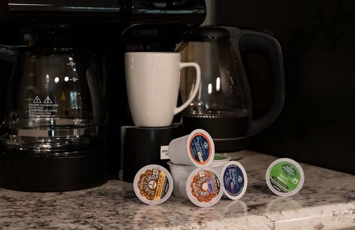 the kitchen is fully equipped with everything you need to cook a great meal We do not provide any food items beyond salt, pepper, cooking spray, and a few starter coffee kpods.