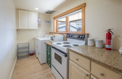Comfortable large Studio Suite with fireplace, kitchen, dining area, Queen bed, couch, TV, private bathroom, patio and view of Peoh Point. Full size stove and refrigerator and Washer/Dryer laundry area. Walking distance to restaurants, bars, and shopping. One half mile to Coal Trax Mountain Bike Park and one half mile to Coal Mine Trail to Roslyn. Three miles to historic Roslyn. Five miles to Suncadia Lodge and bike/walking trails. This is the lower level Suite of the Cle Elum Bungalow. You may rent the entire house under a separate listing. The upper floors of the house are NOT rented when the Studio Suite is occupied by guests..