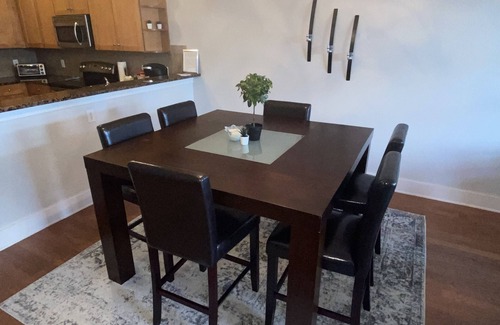 Chic & clean 2/2 open floor plan condo w/ ability to accommodate 6 guests comfortably & located in the Arts District of downtown Davidson. With prime location you can walk to the college, Davidson Lake, farmer's market, outdoor movies in town, shops, restaurants, and art galleries. Also, catch a parade on Main St during the major holidays. Enjoy time on the balconies while drinking complimentary coffee and entertain your guests w/ a fully equipped kitchen.