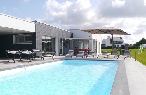 Close to the beach, modern house with large pool and sea views + Wi-Fi | Villa in Trégunc