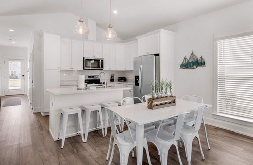 head just around the cul-de-sac you you'll find the neighborhood pool A great alternative for those days where you don't want to deal with the sand at the beach! When you get back from a day of fun in the sun, head out to the back patio to grill up some dinner. Enjoy your BBQ favorites at the dining table or more casually at the kitchen island seating.