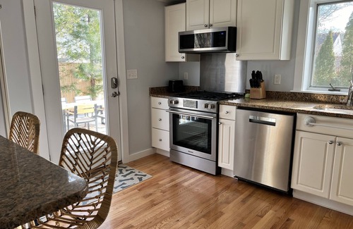 this house has 3 beds and 2 baths, in addition there is a finished basement with a double bed and twin size day bed The kitchen has all new stainless steel kitchen appliances. The house is cooled by a LG a/c system.