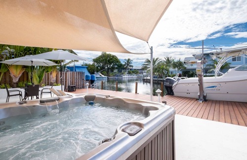 This designer REMODELED IN JULY 2021 3bdr, 2bath home is located on a 60 foot deep water dock in quiet Plantation Key, Florida. This charming vacation home was decorated by an interior designer . The home features a screened in porch, wrap around balcony, sun deck and upper porch for relaxing with a glass of wine or a fine book while watching the birds from the nature preserve flying by. the large travertine deck has a 6 person new luxurious jacuzzi hot tub overlooking the water. The moment you set your foot in the door-you know and feel that you are on vacation, and time stops still....