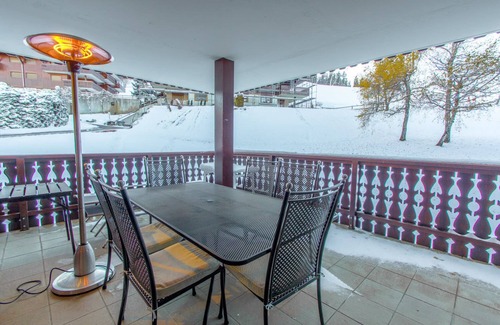 one of the main highlights of apartment cocon is its large terrace, providing a private outdoor space to enjoy the fresh mountain air Whether savoring a morning coffee while taking in the snowy landscapes or relaxing in the evening after a day of skiing, the terrace is the perfect spot to soak up the beauty of the surroundings.