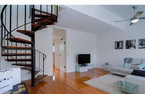 a stunning light filled open living area with the townhouse opening out onto a private courtyard