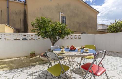 Costa sur: Cosy house "Columbretes", 2 storeys. In the resort 800 m from the centre of Vinaròs, 450 m from the sea, 450 m from the beach. Private: courtyard. Bus stop 600 m, railway station "Vinaròs" 1.8 km. Golf course (18 hole) 13 km. Nearby attractions: Peñiscola 15 km, Ciutat de les Arts i les Ciències 148 km, Morella 60 km, Delta del Ebro 30 km, Port Aventura 105 km. Well-known lakes can easily be reached: Embalse de Ulldecona 35 km. Hiking paths: Parque Natural Sierra de Irta 20 km, Foradada del Montsià 25 km. Please note: no lift. The owner does not accept any youth groups. Neighbourhood highly sensitive to noise. Quietness and good behaviour expected.