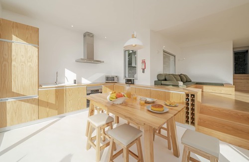 inside, the decor blends with the modern architectural features that stand out through simplicity and good taste The house has two bedrooms with double bed; bathroom; and a fully equipped kitchen. Maximum capacity is 4 people.