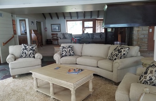 escape the demands of everyday life in this beautiful lakefront home that accommodates 6-9 guests The home is architecturally significant built by a Frank Lloyd Wright protégé on a secluded street just off Illinois Avenue in downtown Green Lake! There are 3 bedrooms and 3 full bathrooms. On the main level are 3 bedrooms: 2 rooms have queen sized beds and the 3rd bedroom has 2 twin sized. The lower level is perfect for kids with their own full bath, TV room and 2 sofa sleepers! There is also a large laundry room with washer and dryer. The house has a large great room with ceiling to floor windows showing off the breath taking views of Green Lake. The backyard features a huge grassy area with built in picnic table and fire pit. Beyond the backyard the pier leads you to beautiful Green Lake where guests can fish or jump in the lake for a refreshing swim. Swim shoes recommended. There is also a boat lift for rent if needed. A Security Deposit and signed Vacation Rental agreement are required to reserve. All inquiries are monitored Mon. - Fri. during normal business hours. We look forward to working with you to fulfil your vacation lodging accommodations.