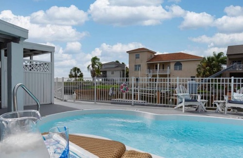 This waterfront Florida home is a 3 bedroom, 2 bathroom pool home that is fully equipped for a relaxing getaway. private dock with canal access to the gulf of mexico, kayaks, paddle board, and fishing poles available for your use during your stay!