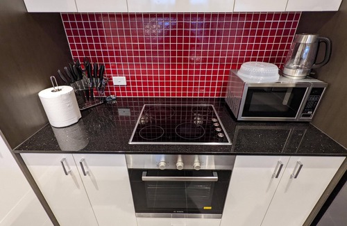 this open plan apartment is accessible through lifts, and comes with a range of thoughtful touches to help make an enjoyable stay