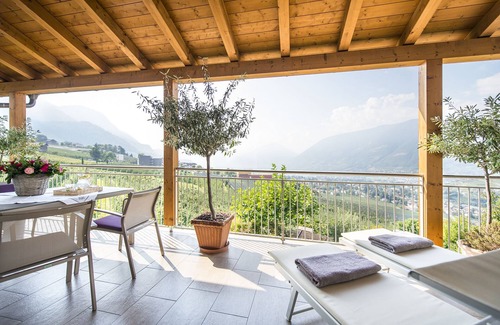 Guests stay in a modern spacious apartment on a beautiful terrace hill. The soothing tranquility and the magnificent view of the Meranerland with its unique mountain scenery.