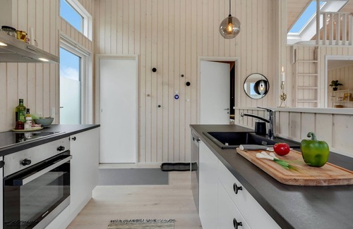 on the naturally beautiful peninsula, this modern vacation home welcomes you in a quiet location Inside, a bright, comfortably furnished interior awaits you, offering everything you need for a successful vacation. The heart of the house is the spacious, open living area with views of the surroundings.