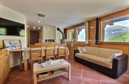 Comfortable flat for 5 to 6 people, living room with wood-burner and 1 divan bed, kitchen area with is located in Grimentz. Comfortable flat for 5 to 6 people, living room with wood-burner and 1 divan bed, kitchen area with provides accommodation, featuring Parking, TV, Balcony/Terrace, among other amenities. This Apartment features Parking, TV, Balcony/Terrace, to make your stay a comfortable one.