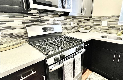 this beautiful home is a newly remodeled with 2 queen beds The home is decorated with an edgy/modern but cozy so it can feel like home. It has an open floor plan, very spacious, & perfect for large families, group trips, & couples..