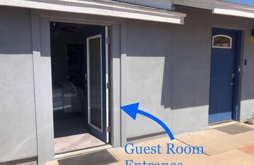 i own and live in the cute, 1950s desert-style home next door You will have all the privacy you want, but I'm available via text/call if you need anything! (I provide my number on the in-room guide.)