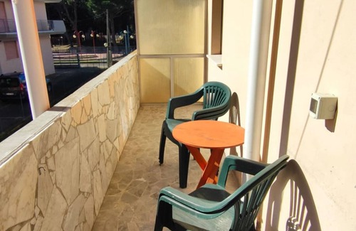 completely renovated two-room apartment on the 1st floor, located just 550m from the beach It's all newly furnished and comes with a living room, kitchen, a large bedroom with a double bed and a bunk bed, bathroom with large shower cubicle and a cozy balcony. Plus, must have amenities like washing machine, A/C, TV and private parking place in the internal courtyard. Pets are not allowed.