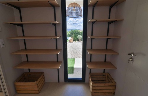 this new house benefits from a particularly attractive exterior with its swimming pool & hot tub, offering a very nice view over the surrounding countryside and the dentelles de montmirail